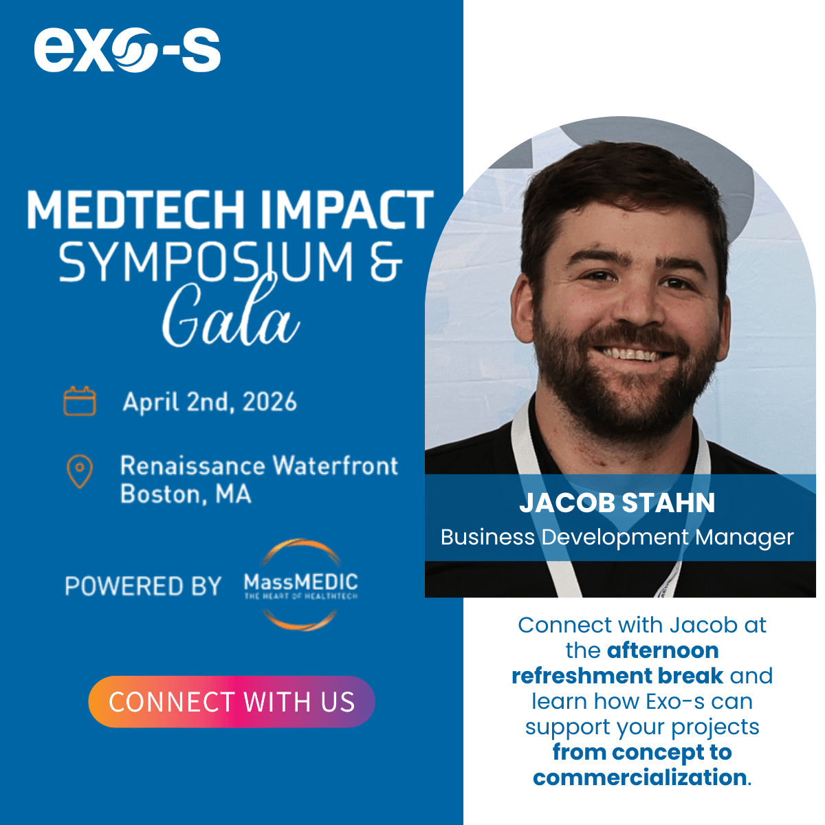 Exo-s is sponsoring the afternoon refreshment & networking break at the MEDTECH IMPACT SYMPOSIUM powered by MassMEDIC! Stop by on April 2nd, 2026 to connect with Jacob Stahn, Medical Business Development Manager, and learn how Exo-s can support your upcoming projects from concept through commercialization. register here: Medtech Impact Symposium & [...]